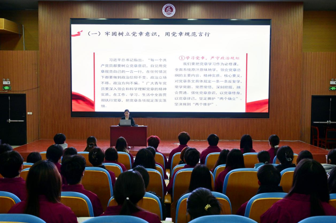 为进一步加强入党积极分子的培养教育,引导其深刻领会党章精神,端正入党动机,筑牢信仰之基,11月4日,党总支书记梁艳以“学党章铸党魂,砥初心强党性”为主题,在开封校区南院学生活动中心为学院第十四期54名入党积极分子讲授专题党课。