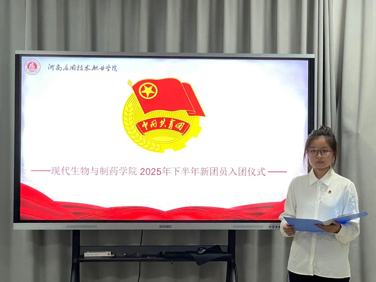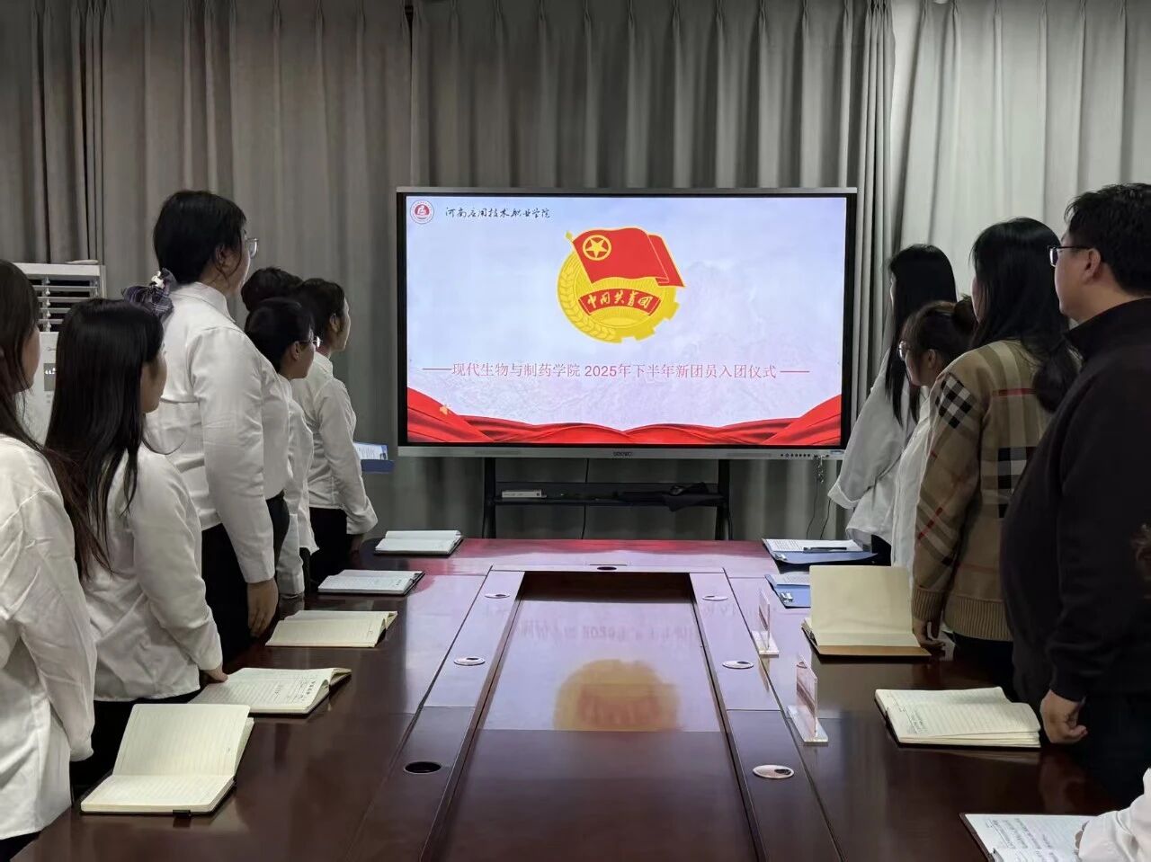 岁聿云暮,薪火绵延。为夯实党团一体化培养根基,凝聚青年奋进力量,12月4日,2025年下半年现代生物与制药学院新发展团员入团仪式于行政楼301会议室隆重举行。学院党总支副书记王俊永、团总支书记曹璐出席仪式,优秀团员代表与全体新团员共同参加,仪式由化制2401班任政泽主持。