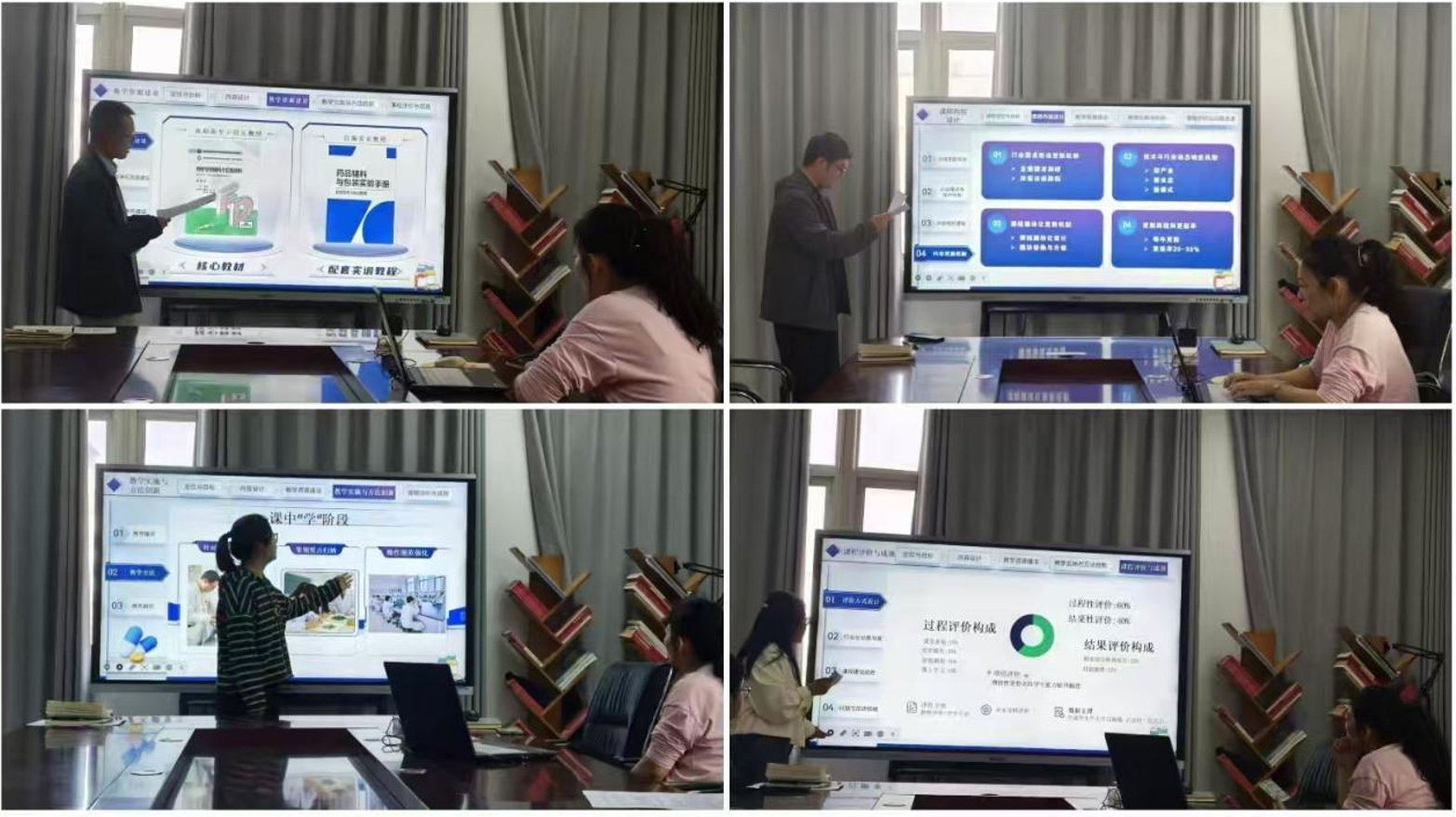 会上,各专业带头人、课程负责人及骨干教师逐一登台,结合评估指标,从专业定位与目标、内容设计、教学资源建设、教学实施与方法创新及课程评价与成效五个方面进行系统阐述。教师们准备充分、逻辑清晰,展现了扎实的教学基本功和良好的精神风貌。