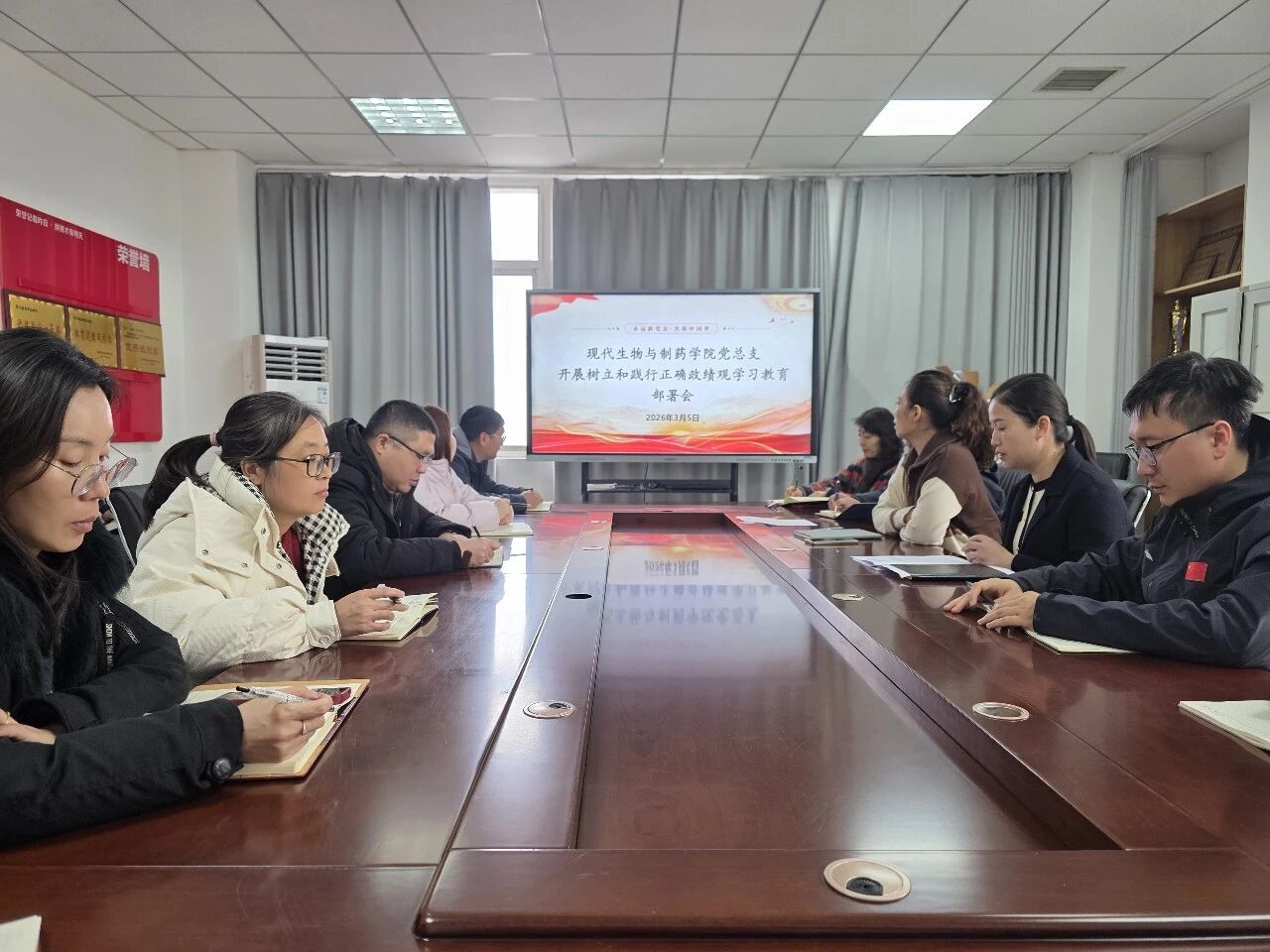 3月5日下午,现代生物与制药学院党总支在办公楼301会议室召开树立和践行正确政绩观学习教育部署会。党总支书记梁艳主持会议,全体党员参加会议。